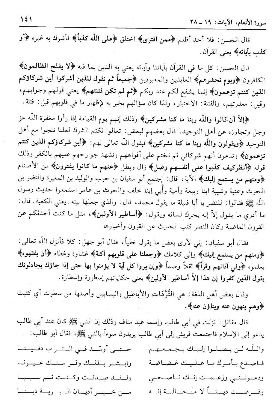 قال مقاتل: نزلت في أبي طالب! واسمه عبد مناف وذلك إن النبي صلى الله عليه وسلّم كان عند أبي طالب يدعو إلى الإسلام فاجتمعت قريش إلى أبي طالب يريدون سوءا بالنبي صلى الله عليه وسلّم، فقال أبو طالب: