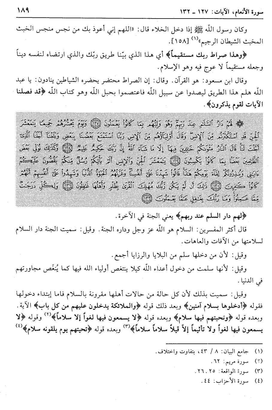 وبعده قوله وَتَحِيَّتُهُمْ فِيها سَلامٌ وبعده قوله لا يَسْمَعُونَ فِيها لَغْواً إِلَّا سَلاماً «2» وقوله لا يَسْمَعُونَ فِيها لَغْواً وَلا تَأْثِيماً إِلَّا قِيلًا سَلاماً سَلاماً «3» وبعده قوله تَحِيَّتُهُمْ يَوْمَ يَلْقَوْنَهُ سَلامٌ «4»