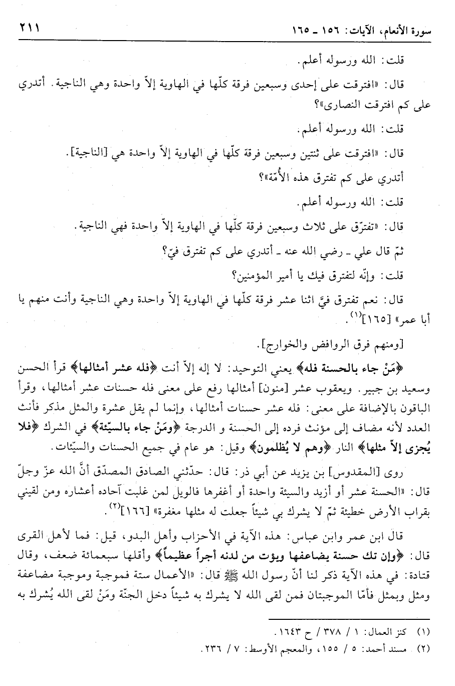 . (2) مسند أحمد: 5/ 155، والمعجم الأوسط: 7/ 236