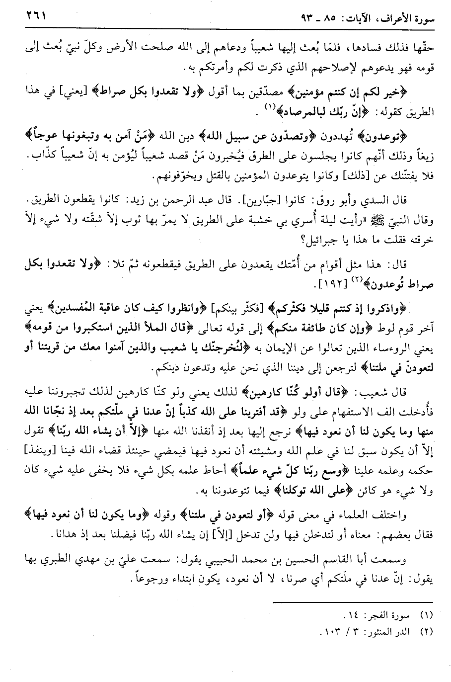 قال: هذا مثل أقوام من أمّتك يقعدون على الطريق فيقطعونه ثمّ تلا: وَلا تَقْعُدُوا بِكُلِّ صِراطٍ تُوعِدُونَ «2» [192] .