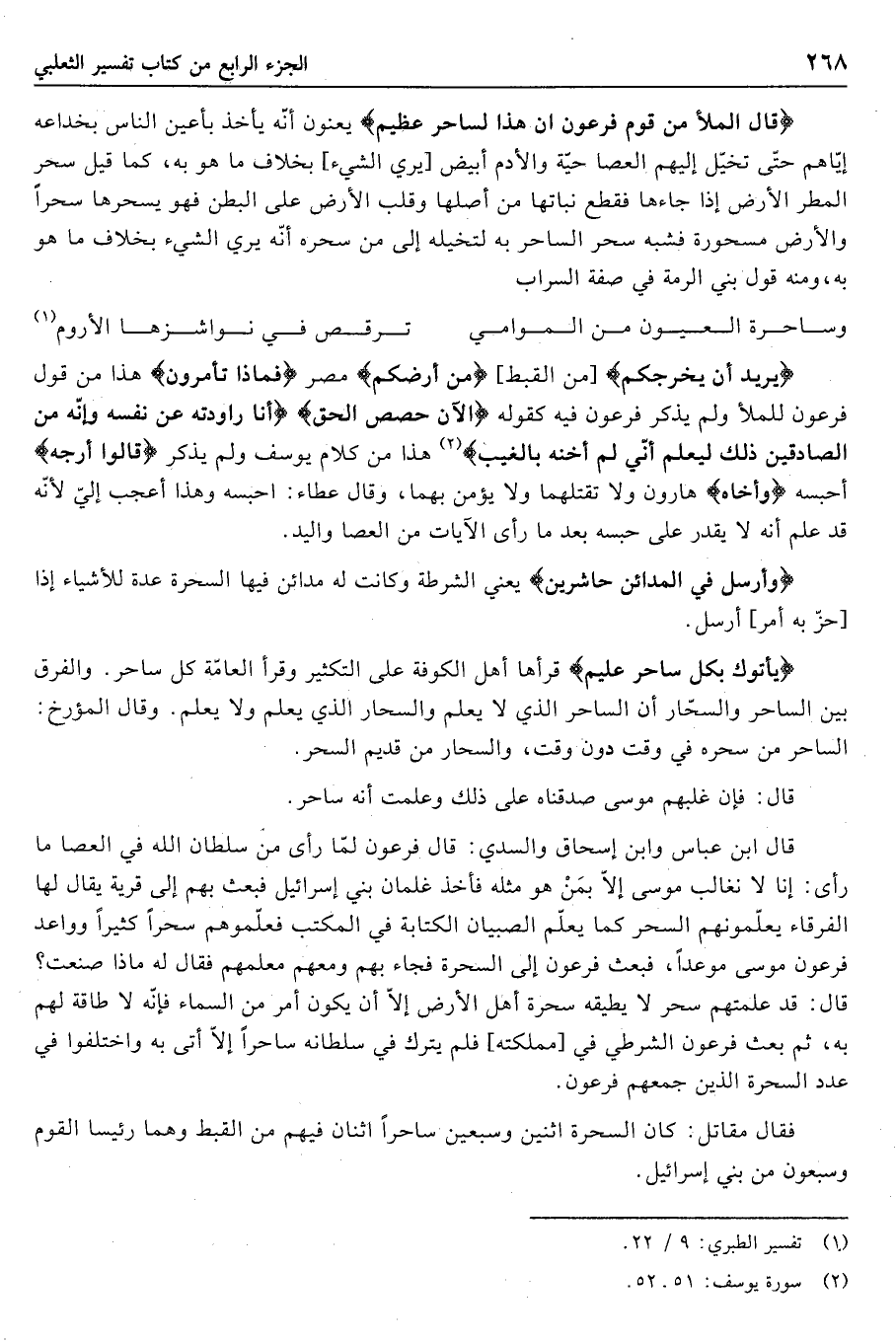 قال: قد علمتهم سحر لا يطيقه سحرة أهل الأرض إلّا أن يكون أمر من السماء فإنّه لا طاقة لهم به، ثم بعث فرعون الشرطي في [مملكته] فلم يترك في سلطانه ساحرا إلّا أتى به واختلفوا في عدد السحرة الذين جمعهم فرعون.