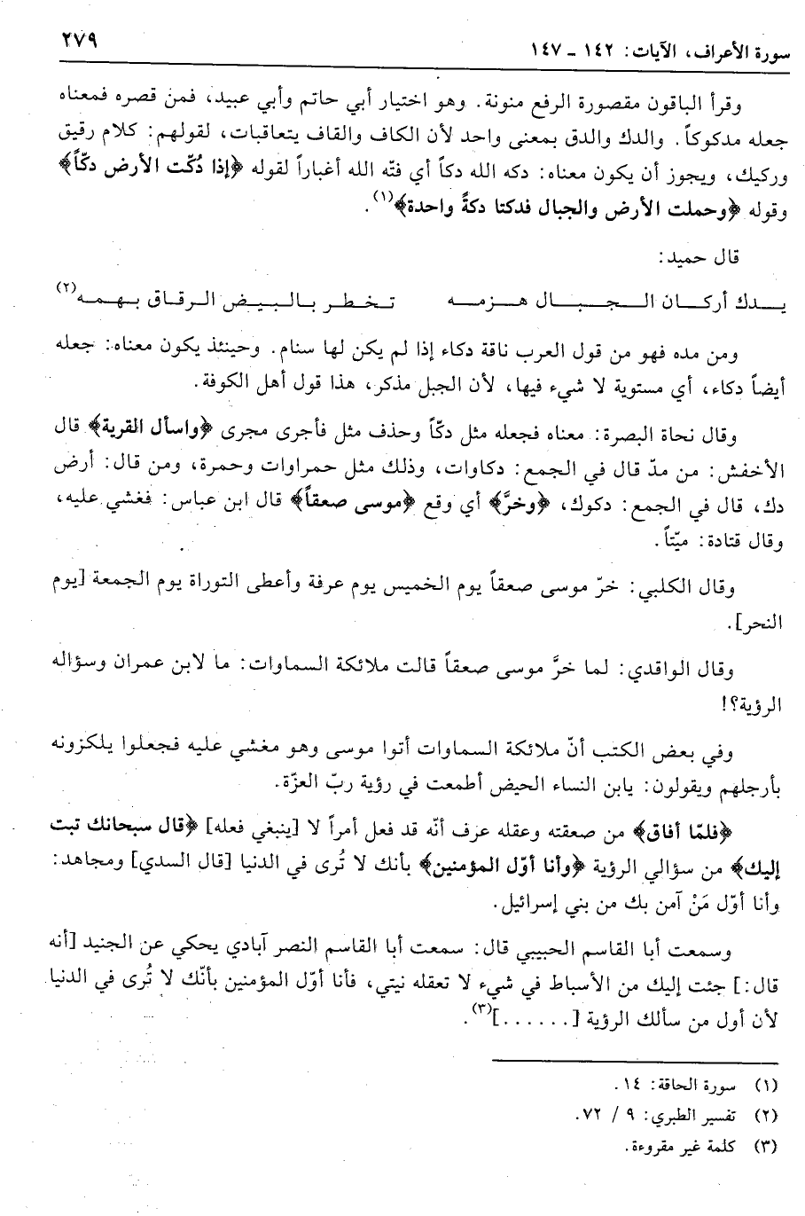 وسمعت أبا القاسم الحبيبي قال: سمعت أبا القاسم النصرآبادي يحكي عن الجنيد [أنه قال:] جئت إليك من الأسباط في شيء لا تعلقه نيتي، فأنا أوّل المؤمنين بأنّك لا ترى في الدنيا لأن أول من سألك الرؤية [ ... ] «3» .