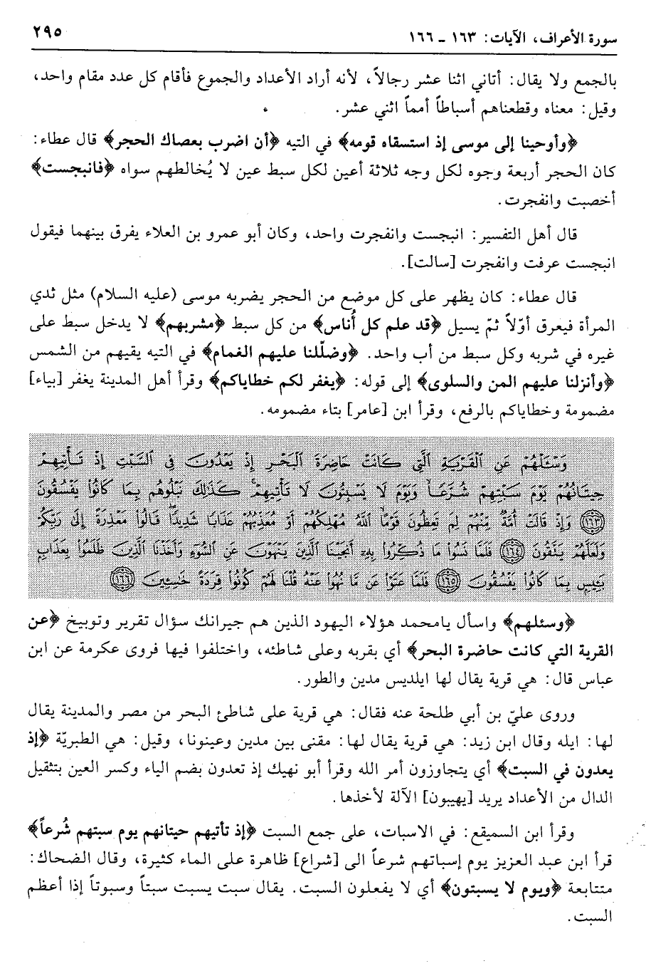 وَسْئَلْهُمْ واسأل يا محمد هؤلاء اليهود الذين هم جيرانك سؤال تقرير وتوبيخ عَنِ الْقَرْيَةِ الَّتِي كانَتْ حاضِرَةَ الْبَحْرِ أي بقربه وعلى شاطئه، واختلفوا فيها فروى عكرمة عن ابن عباس قال: هي قرية يقال لها ايلديس مدين والطور.