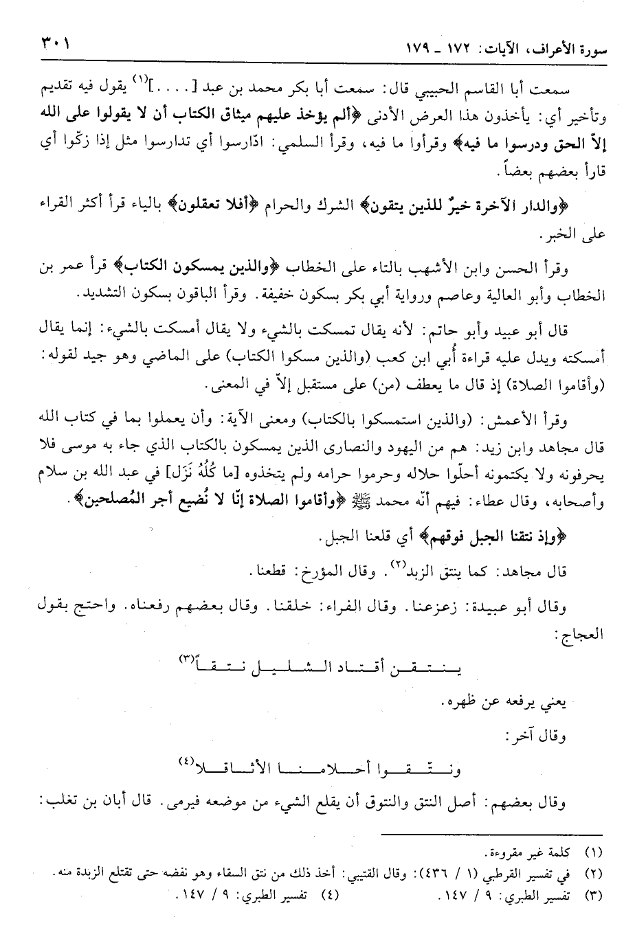 (2) في تفسير القرطبي (1/ 436) : وقال القتيبي: أخذ ذلك من نتق السقاء وهو نفضه حتى تقتلع الزبدة منه.