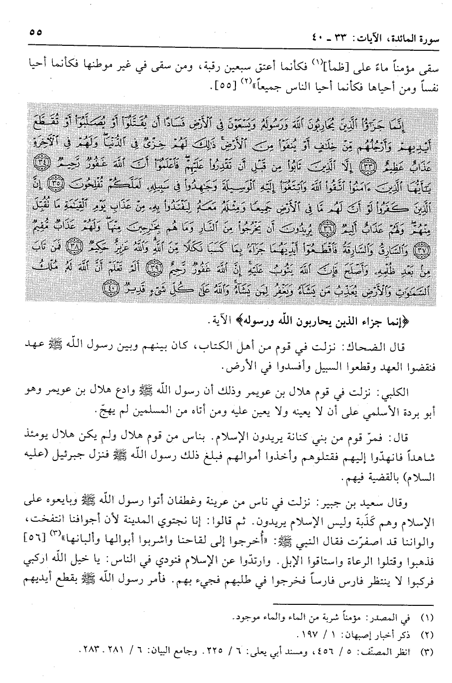. إِنَّما جَزاءُ الَّذِينَ يُحارِبُونَ اللَّهَ وَرَسُولَهُ الآية.