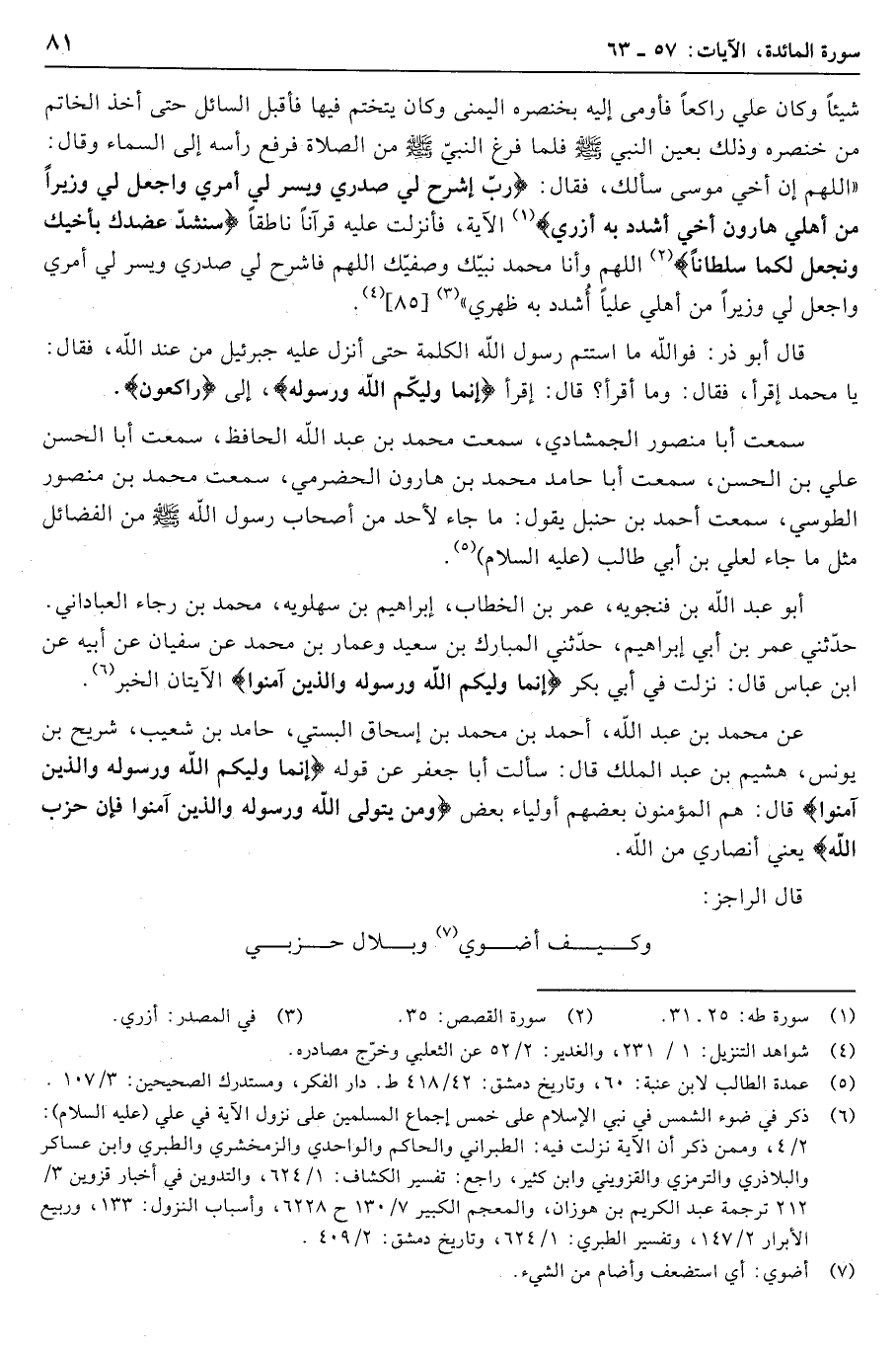 عن محمد بن عبد الله، أحمد بن محمد بن إسحاق البستي، حامد بن شعيب، شريح بن يونس، هشيم بن عبد الملك قال: سألت أبا جعفر عن قوله إِنَّما وَلِيُّكُمُ اللَّهُ وَرَسُولُهُ وَالَّذِينَ آمَنُوا قال: هم المؤمنون بَعْضُهُمْ أَوْلِياءُ بَعْضٍ