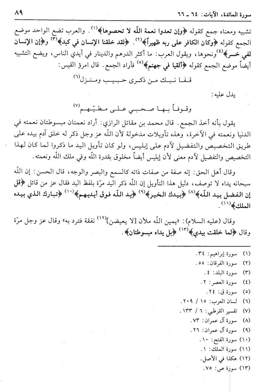 وقال عز وجل مرّة وقال لِما خَلَقْتُ بِيَدَيَّ «13» بَلْ يَداهُ مَبْسُوطَتانِ.