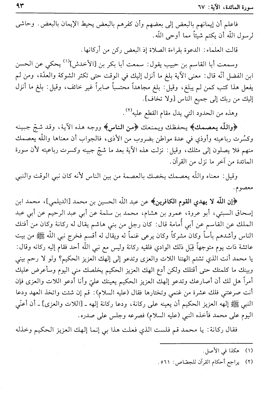 . (2) يراجع أحكام القرآن للجصّاص: 561