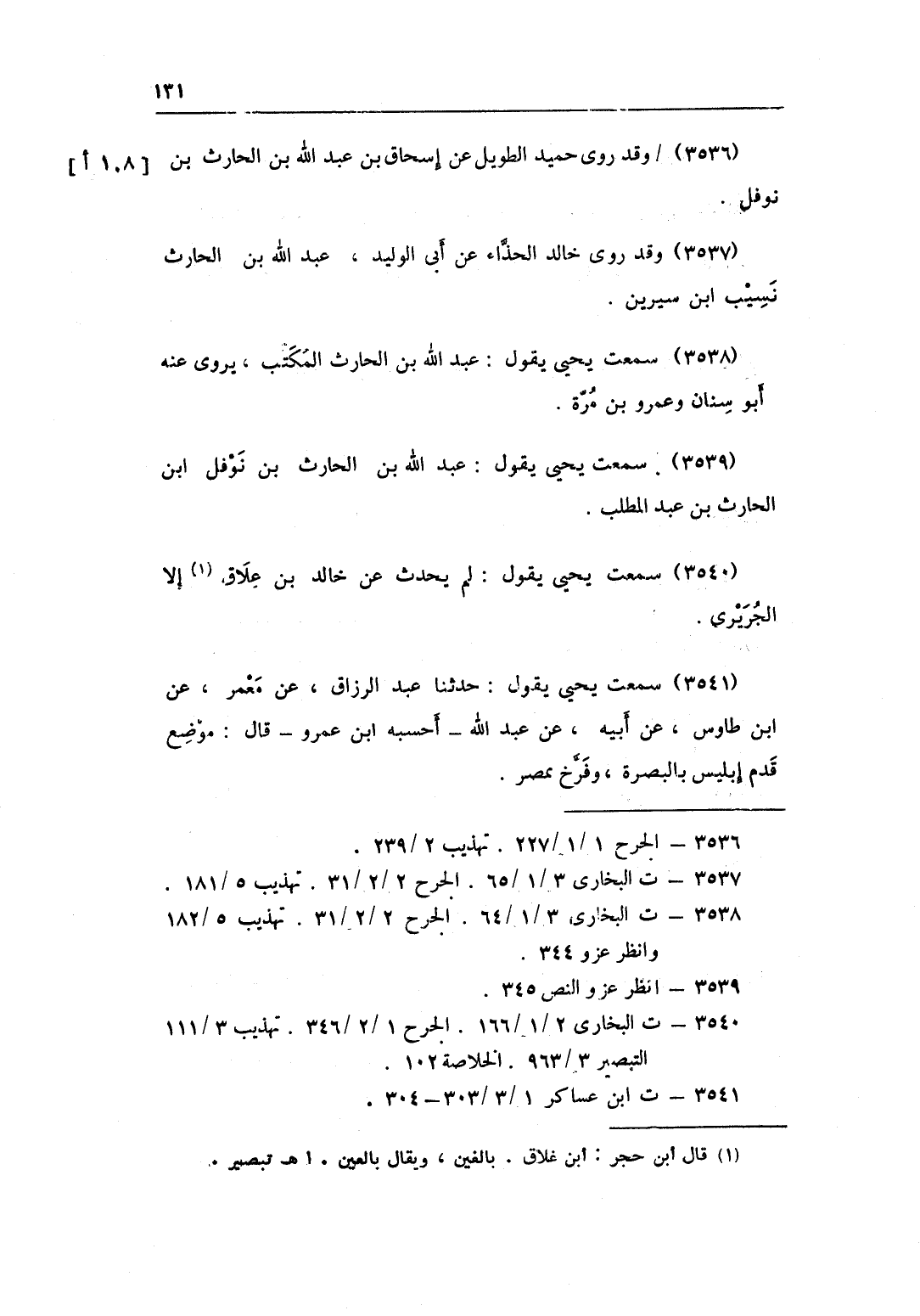 3539 - سَمِعت يحيى يَقُول عبد الله بن الْحَارِث بن نَوْفَل بن الْحَارِث بن عبد الْمطلب
