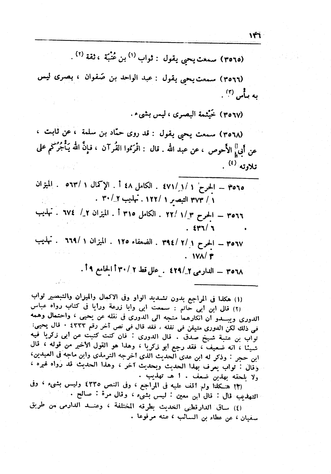 3568 - سَمِعت يحيى يَقُول قد روى حَمَّاد بن سَلمَة عَن ثَابت عَن أبي الْأَحْوَص عَن عبد الله قَالَ أقرءوا الْقُرْآن فَإِن الله يَأْجُركُمْ على تِلَاوَته قَالَ يحيى وَيَرْوِيه مبارك بن فضَالة عَن الْحسن عَن أبي الْأَحْوَص قلت ليحيى سمع الْحسن من أبي الْأَحْوَص قَالَ نعم