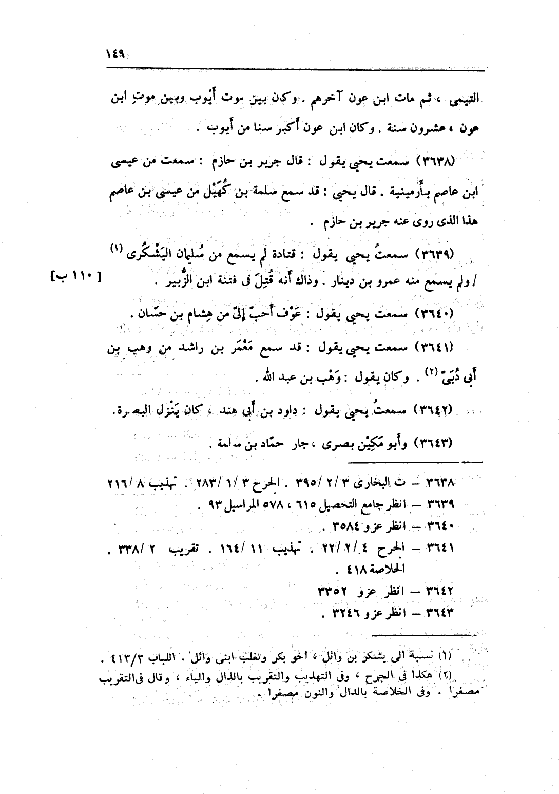 3639 - سَمِعت يحيى يَقُول قَتَادَة لم يسمع من سُلَيْمَان الْيَشْكُرِي وَلم يسمع مِنْهُ عَمْرو بن دِينَار وَذَاكَ أَنه قتل فِي فتْنَة بن الزبير