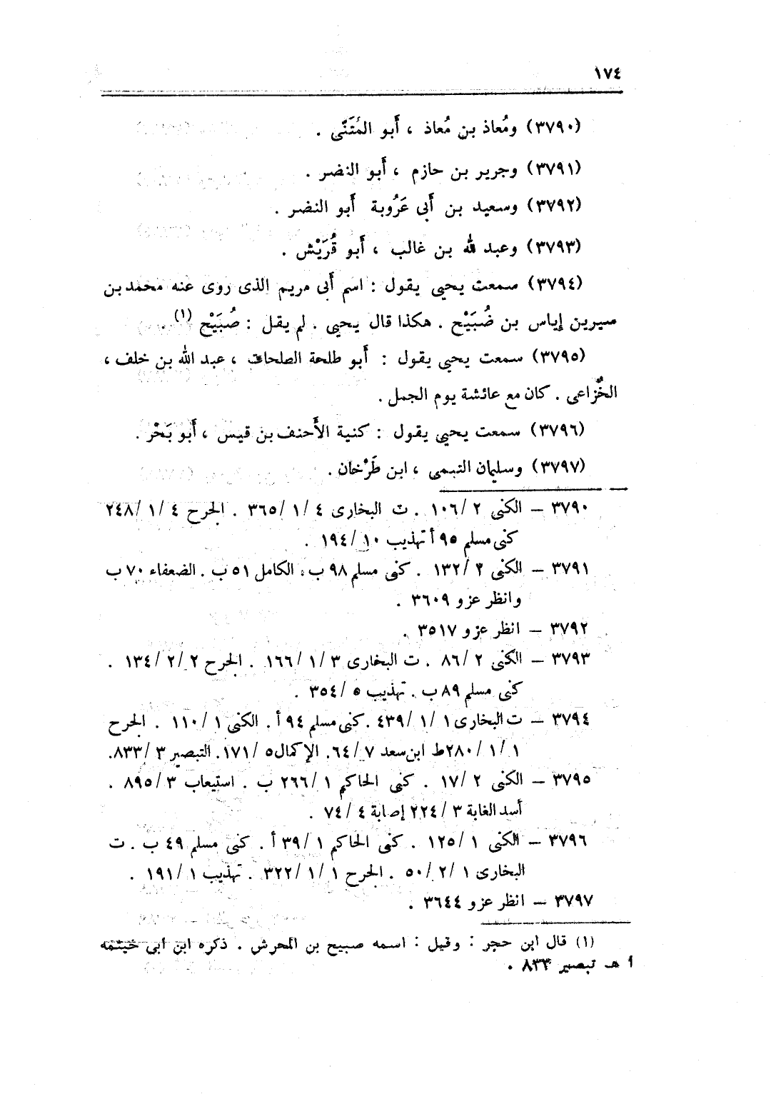 3796 - سَمِعت يحيى يَقُول كنية الْأَحْنَف بن قيس أَبُو بَحر