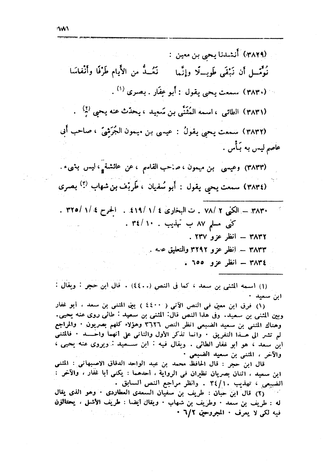 3831 - الطَّائِي اسْمه الْمثنى بن سعيد يحدث عَنهُ يحيى
