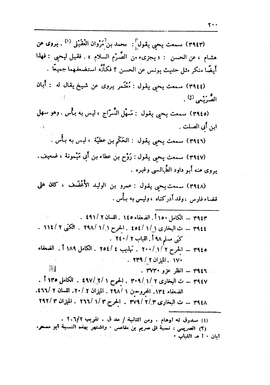 3943 - سَمِعت يحيى يَقُول مُحَمَّد بن مَرْوَان الْعقيلِيّ يروي عَن هِشَام عَن الْحسن يُجزئ من الصرم السَّلَام فَقيل ليحيى فَهَذَا أَيْضا مُنكر مثل حَدِيث يُونُس عَن الْحسن فَكَأَنَّهُ استضعفهما جَمِيعًا