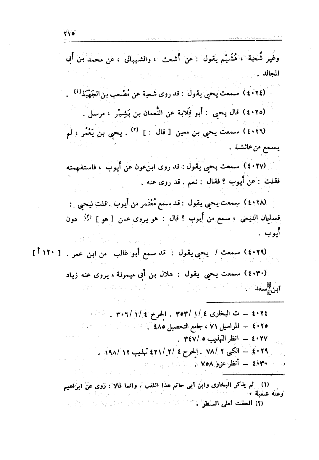 4028 - سَمِعت يحيى يَقُول قد سمع مُعْتَمر من أَيُّوب قلت ليحيى فسليمان التَّيْمِيّ سمع من أَيُّوب قَالَ هُوَ يروي عَمَّن هُوَ دون أَيُّوب