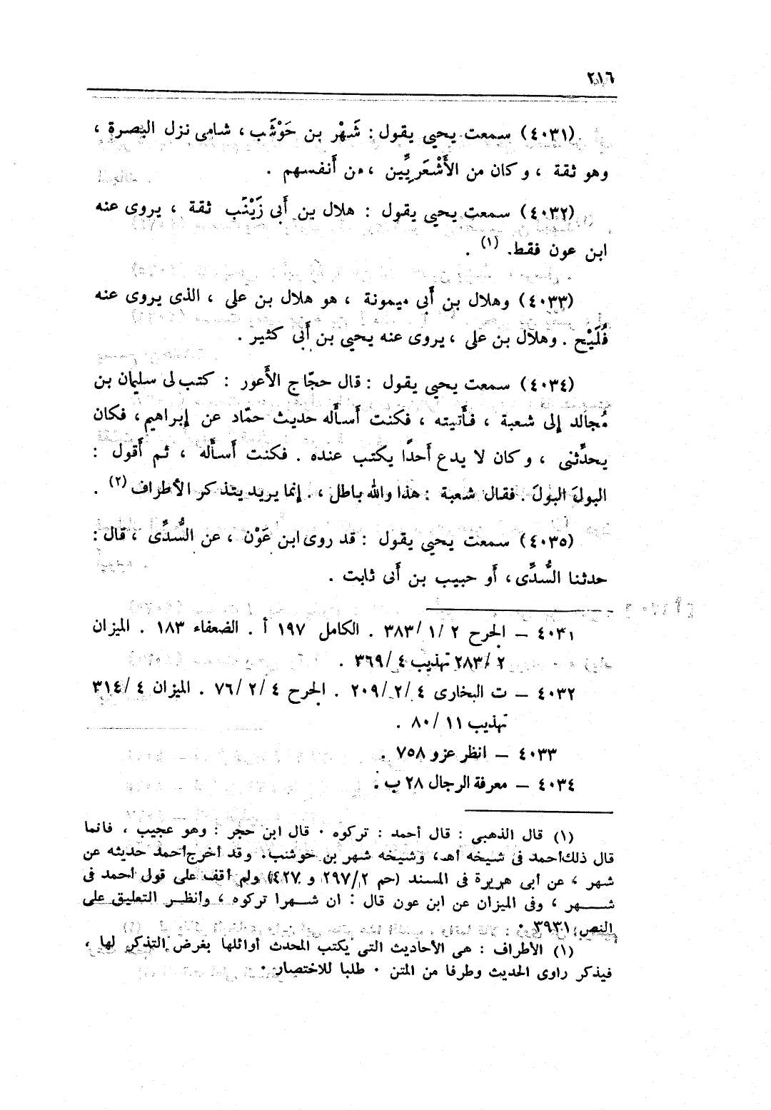 4031 - سَمِعت يحيى يَقُول شهر بن حَوْشَب شَامي نزل الْبَصْرَة وَهُوَ ثِقَة وَكَانَ من الْأَشْعَرِيين من أنفسهم