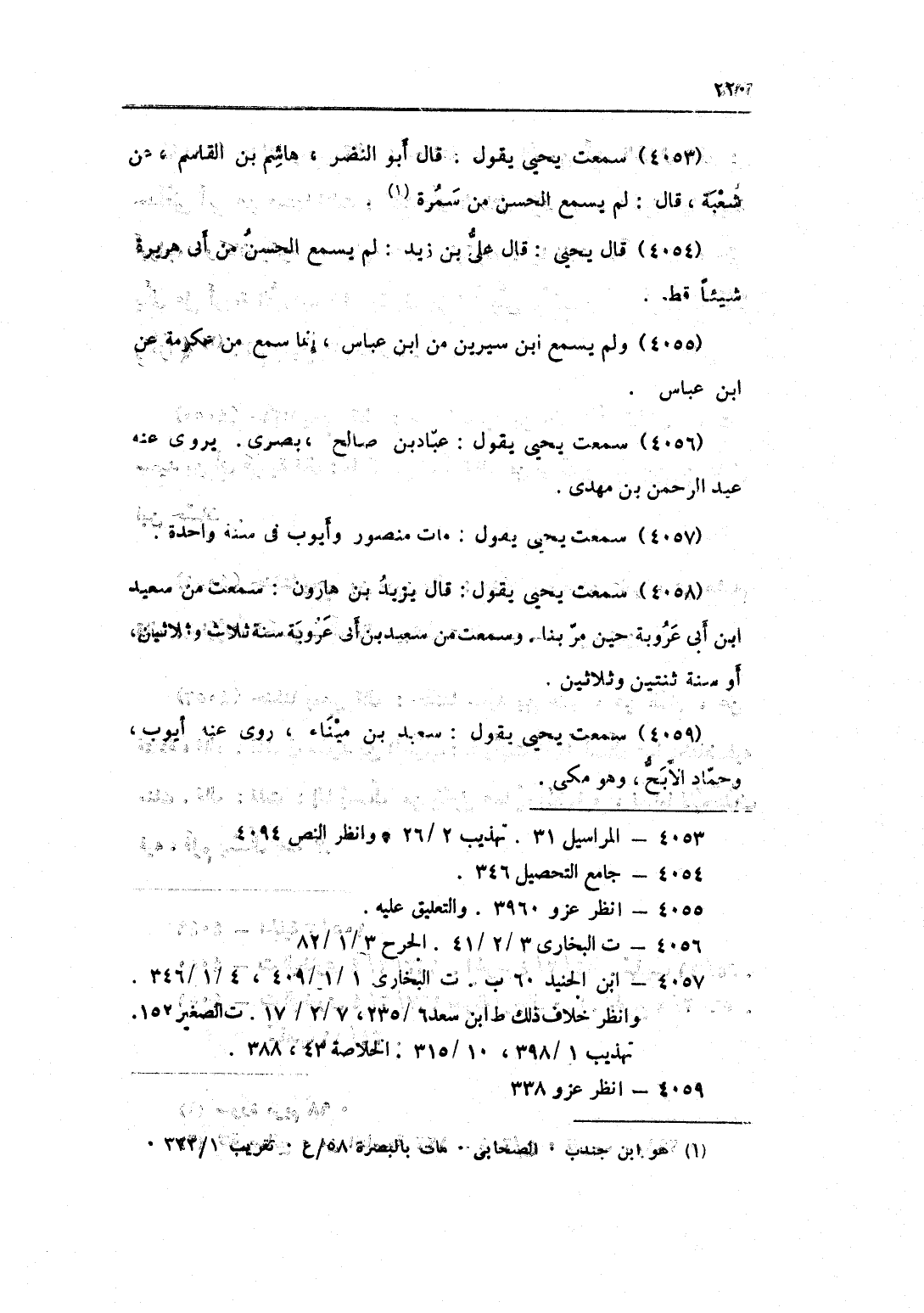 4058 - سَمِعت يحيى يَقُول قَالَ يزِيد بن هَارُون سَمِعت من سعيد بن أبي عرُوبَة حِين مر بِنَا وَسمعت من سعيد بن أبي عرُوبَة سنة ثَلَاث وَثَلَاثِينَ أَو سنة ثِنْتَيْنِ وَثَلَاثِينَ