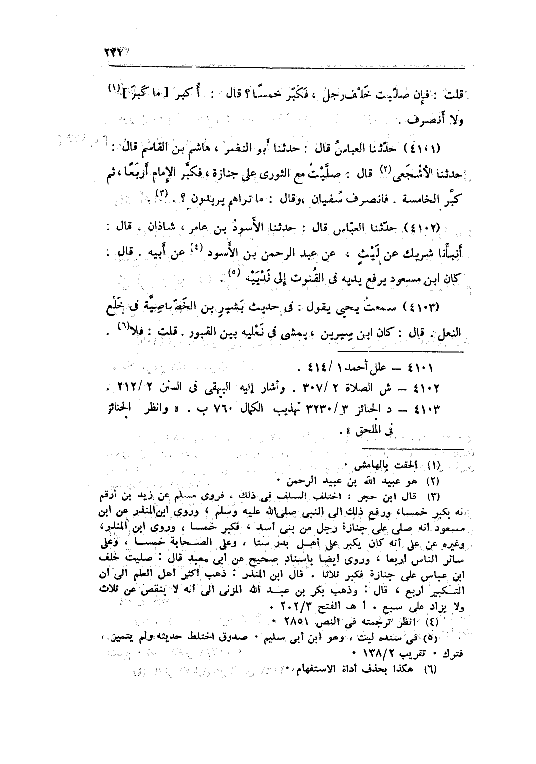 4101 - حَدثنَا الْعَبَّاس قَالَ حَدثنَا أَبُو النَّضر هَاشم بن الْقَاسِم قَالَ حَدثنَا الْأَشْجَعِيّ قَالَ صليت مَعَ الثَّوْريّ على جَنَازَة فَكبر الإِمَام أَرْبعا ثمَّ كبر الْخَامِسَة فَانْصَرف سُفْيَان وَقَالَ مَا تراهم يُرِيدُونَ