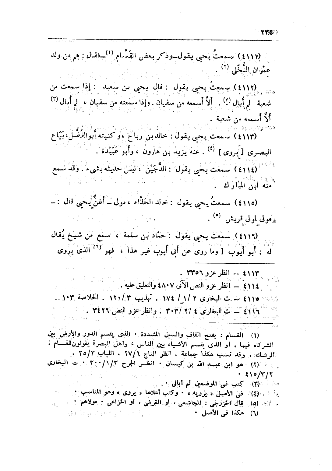 4112 - سَمِعت يحيى يَقُول قَالَ يحيى بن سعيد إِذا سَمِعت من شُعْبَة لم أبال أَلا أسمعهُ من سُفْيَان وَإِذا سمعته من سُفْيَان لم أبال أَلا أسمعهُ من شُعْبَة