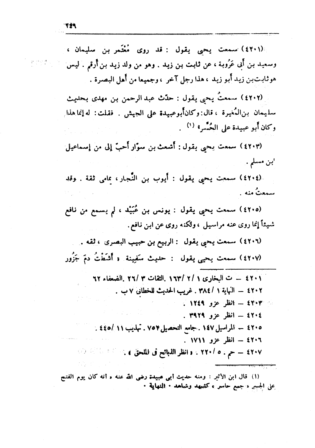 4205 - سَمِعت يحيى يَقُول يُونُس بن عبيد لم يسمع من نَافِع شَيْئا إِنَّمَا روى عَنهُ مَرَاسِيل وَلكنه روى عَن بن نَافِع