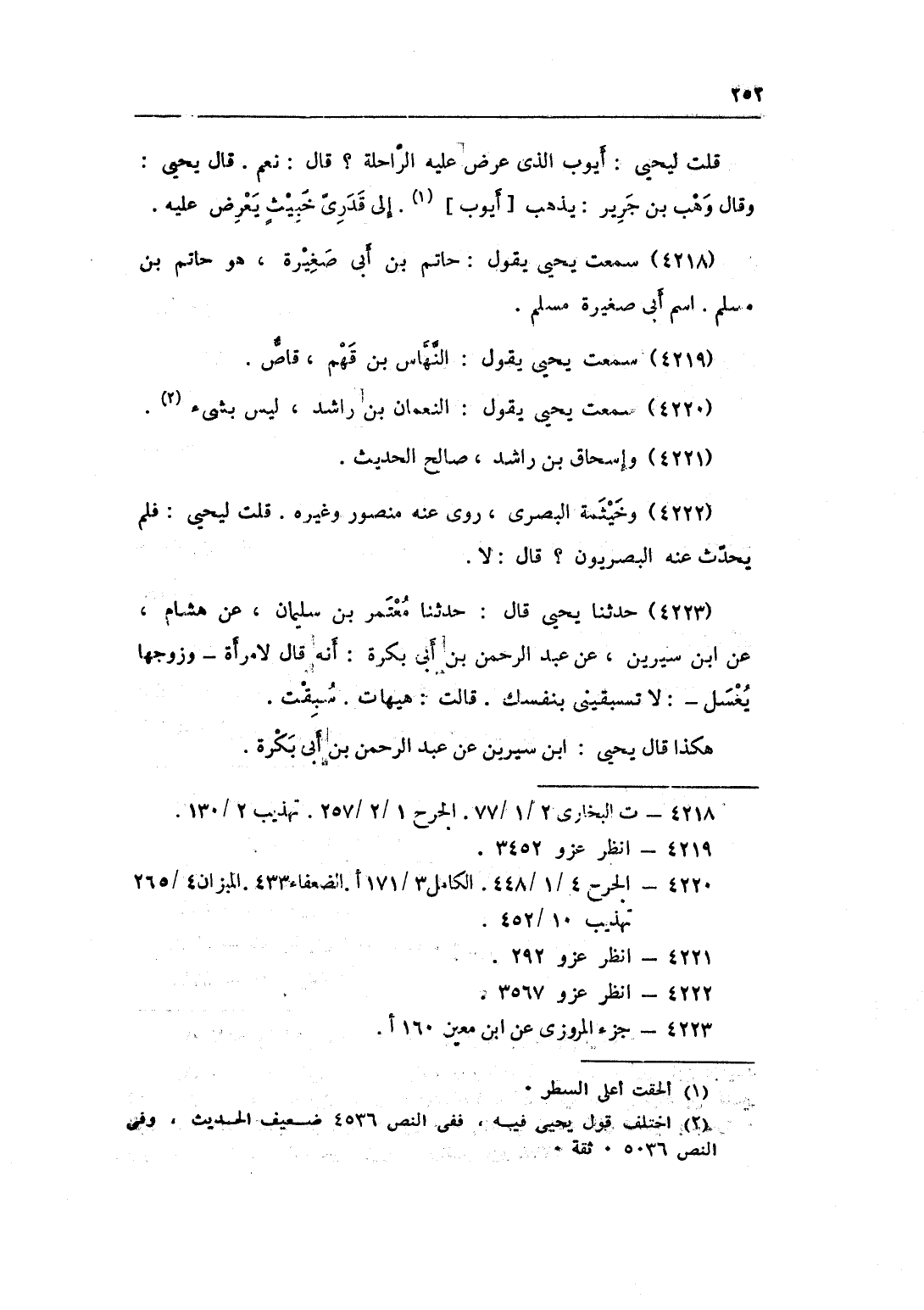 4219 - سَمِعت يحيى يَقُول النهاس بن قهم قاص
