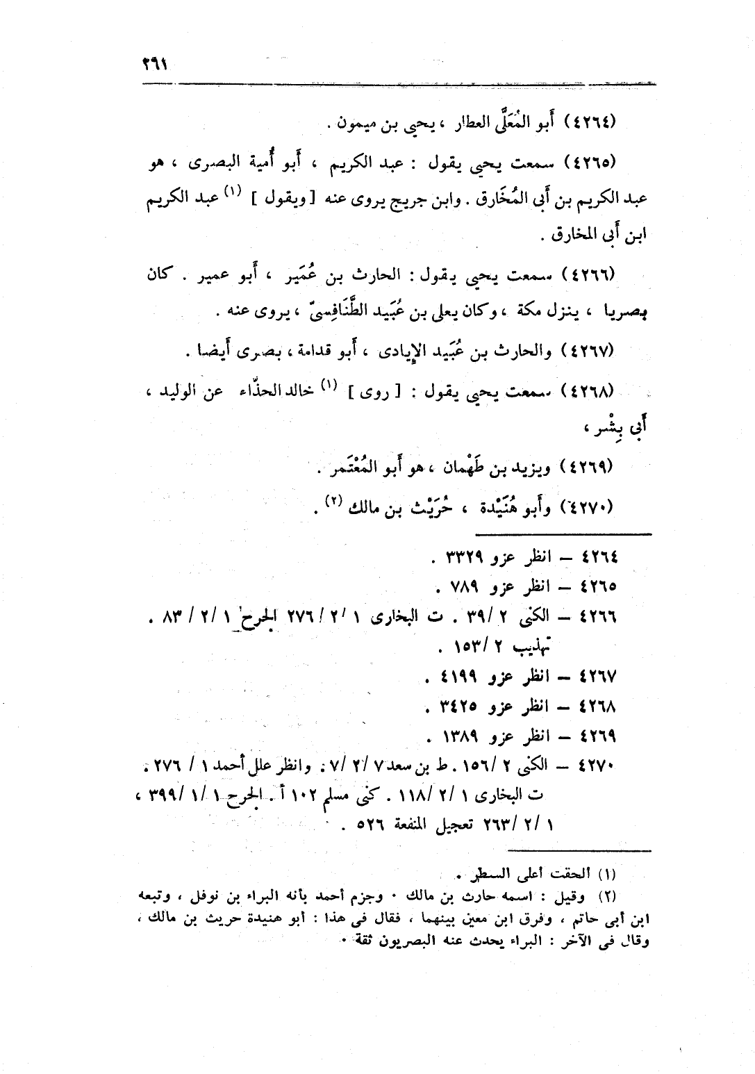 4265 - سَمِعت يحيى يَقُول عبد الْكَرِيم أَبُو أُميَّة الْبَصْرِيّ هُوَ عبد الْكَرِيم بن أبي الْمخَارِق وَابْن جريج يرْوى عَنهُ وَيَقُول عبد الْكَرِيم بن أبي الْمخَارِق