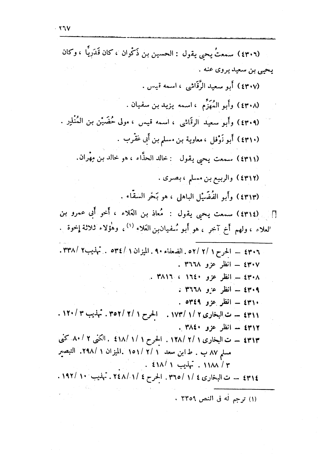 4314 - سَمِعت يحيى يَقُول معَاذ بن الْعَلَاء أَخُو أبي عَمْرو بن الْعَلَاء وَلَهُم أَخ آخر هُوَ أَبُو سُفْيَان بن الْعَلَاء وَهَؤُلَاء ثَلَاثَة إخْوَة