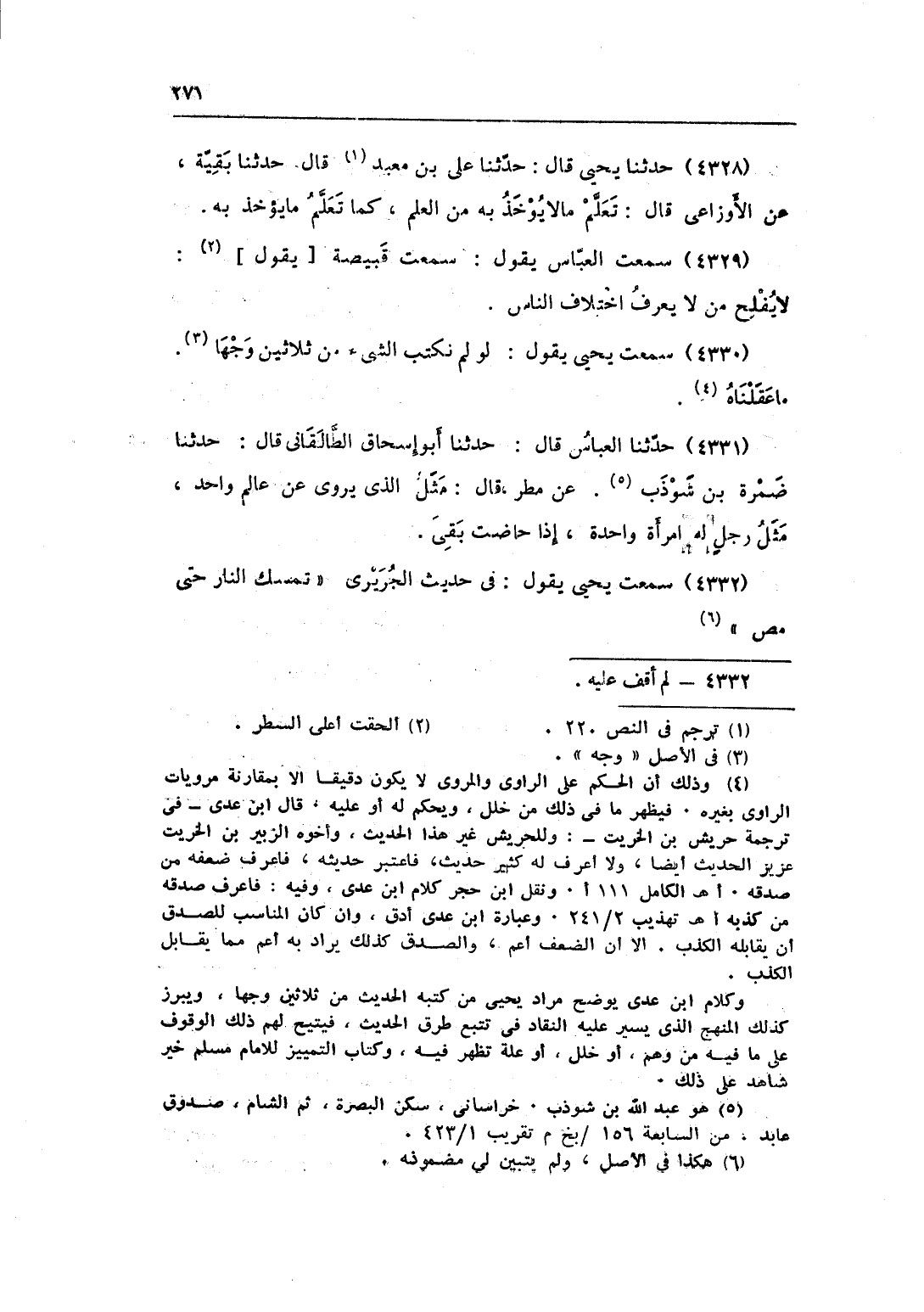 4330 - سَمِعت يحيى يَقُول لَو لم نكتب الشَّيْء من ثَلَاثِينَ وَجها مَا عَقَلْنَاهُ