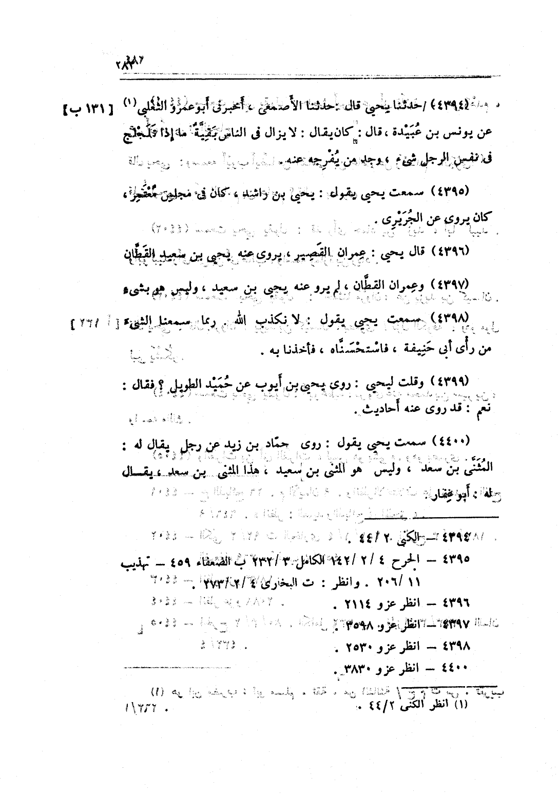 4397 - وَعمْرَان الْقطَّان لم يرو عَنهُ يحيى بن سعيد وَلَيْسَ هُوَ بِشَيْء