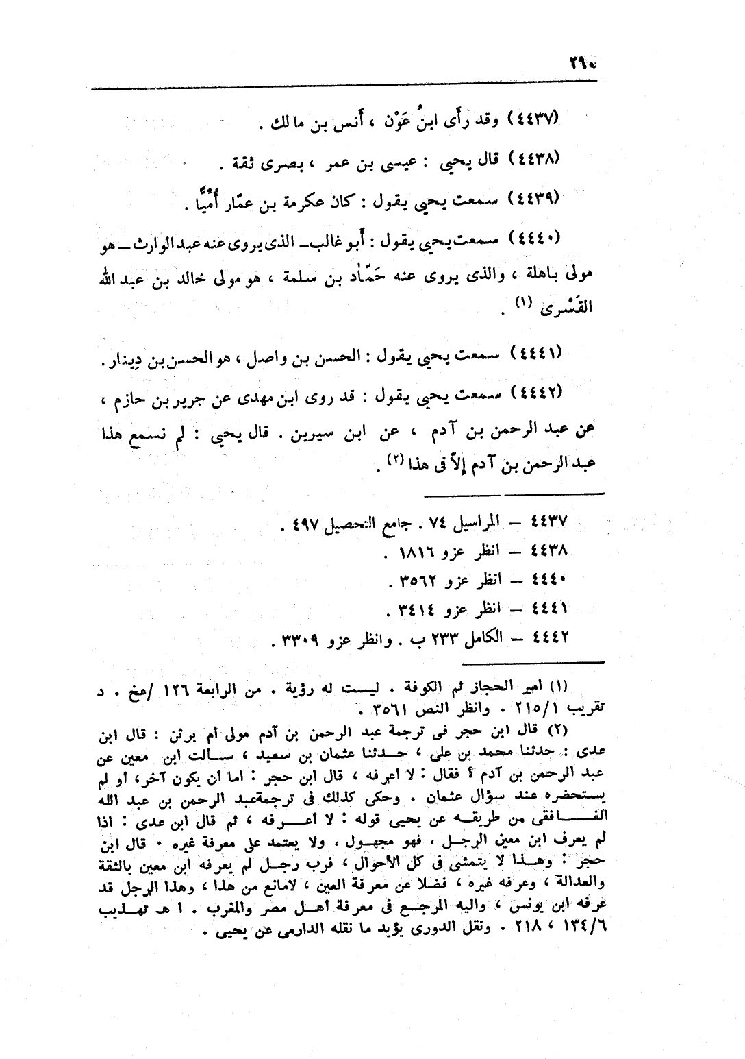 4442 - سَمِعت يحيى يَقُول قد روى بن مهدى عَن جرير بن حَازِم عَن عبد الرَّحْمَن بن آدم عَن بن سِيرِين قَالَ يحيى لم نسْمع هَذَا عبد الرَّحْمَن بن آدم إِلَّا فِي هَذَا
