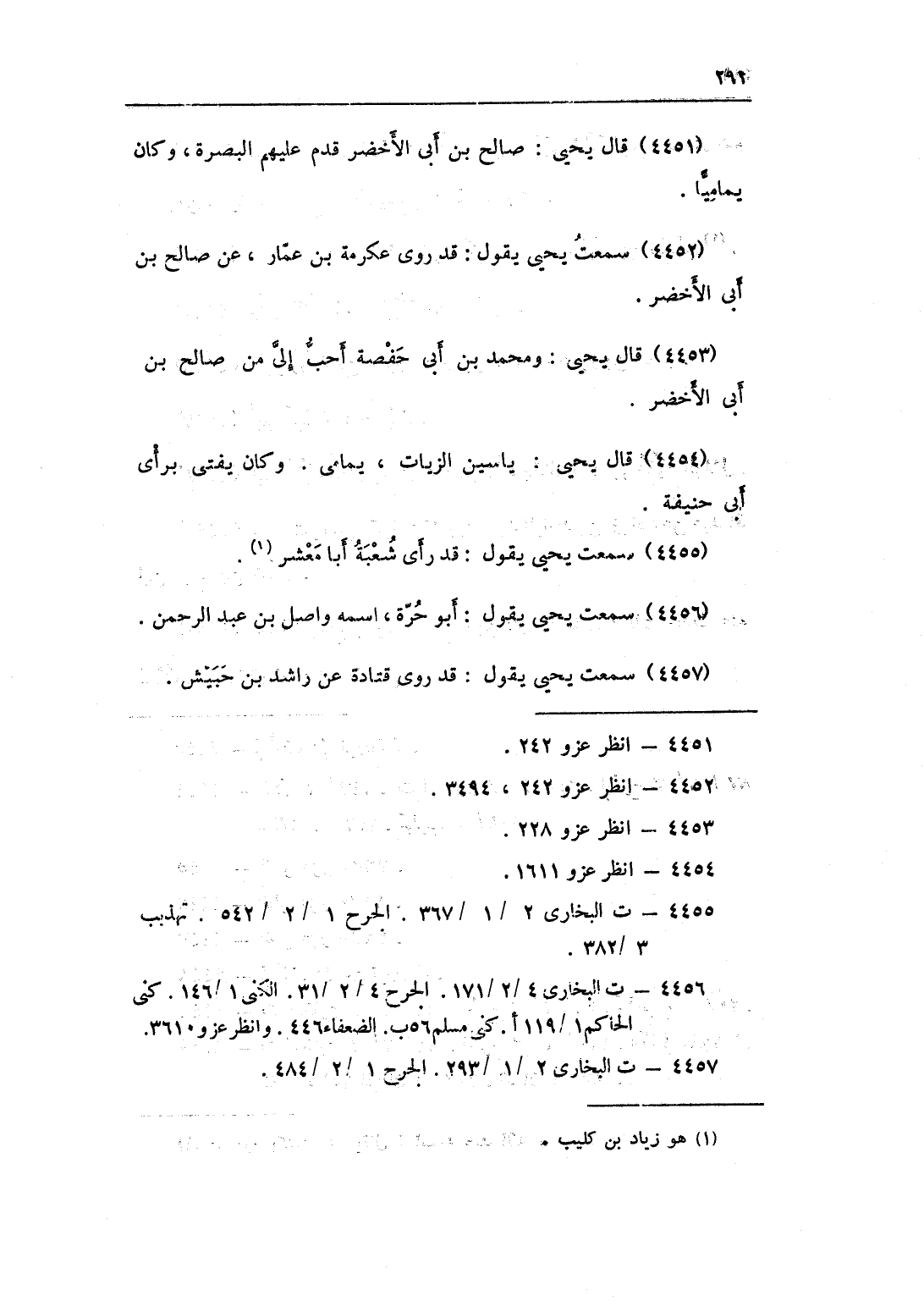 4457 - سَمِعت يحيى يَقُول قد روى قَتَادَة عَن رَاشد بن حُبَيْش
