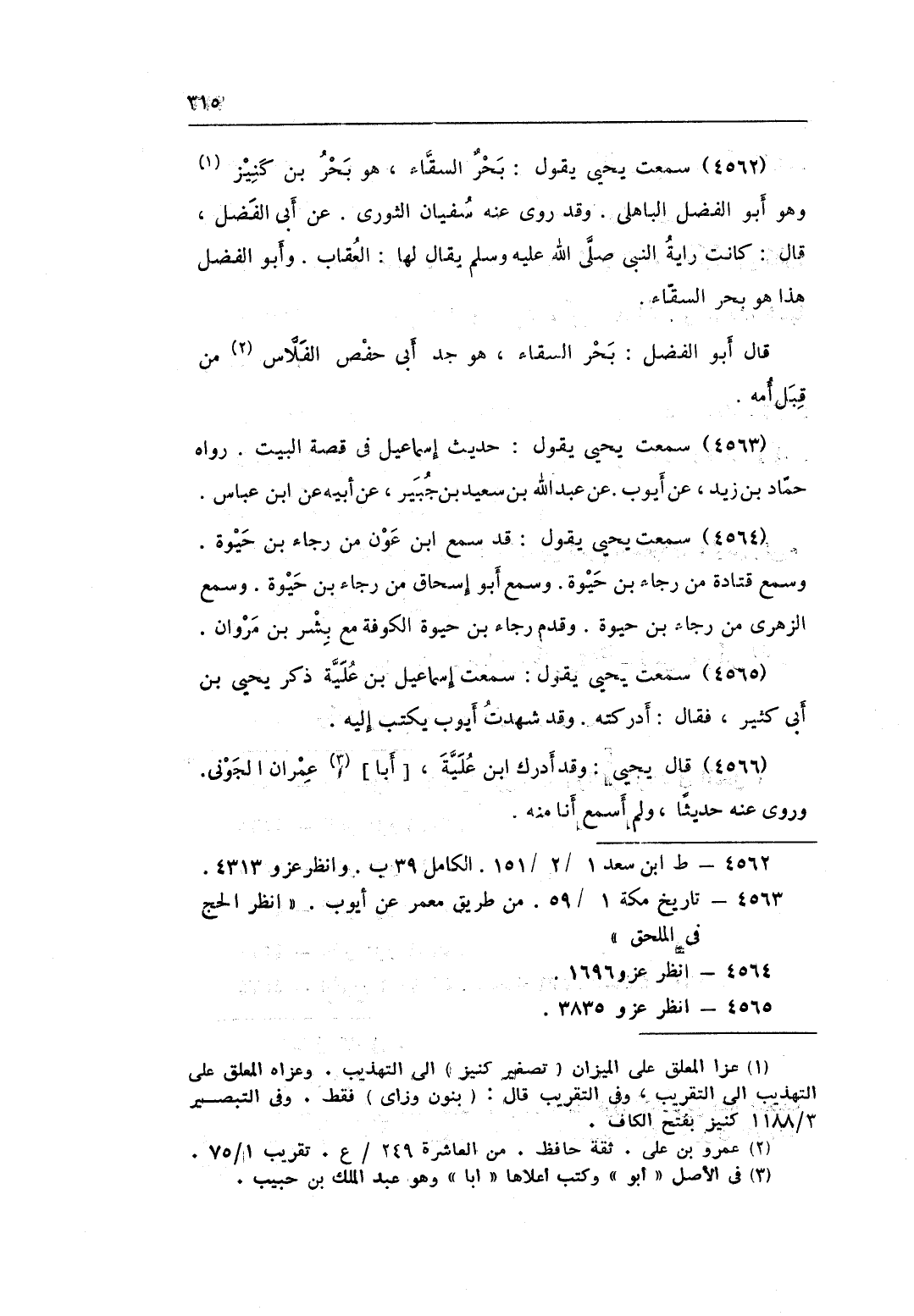 4562 - سَمِعت يحيى يَقُول بَحر السقاء هُوَ بَحر بن كنيز وَهُوَ أَبُو الْفضل الْبَاهِلِيّ وَقد روى عَنهُ سُفْيَان الثَّوْريّ عَن أبي الْفضل قَالَ كَانَت راية النَّبِي صلى الله عَلَيْهِ وَسلم يُقَال لَهَا الْعقَاب وَأَبُو الْفضل هَذَا هُوَ بَحر السقاء قَالَ أَبُو الْفضل بَحر السقاء هُوَ جد أبي حَفْص الفلاس من قبل أمه