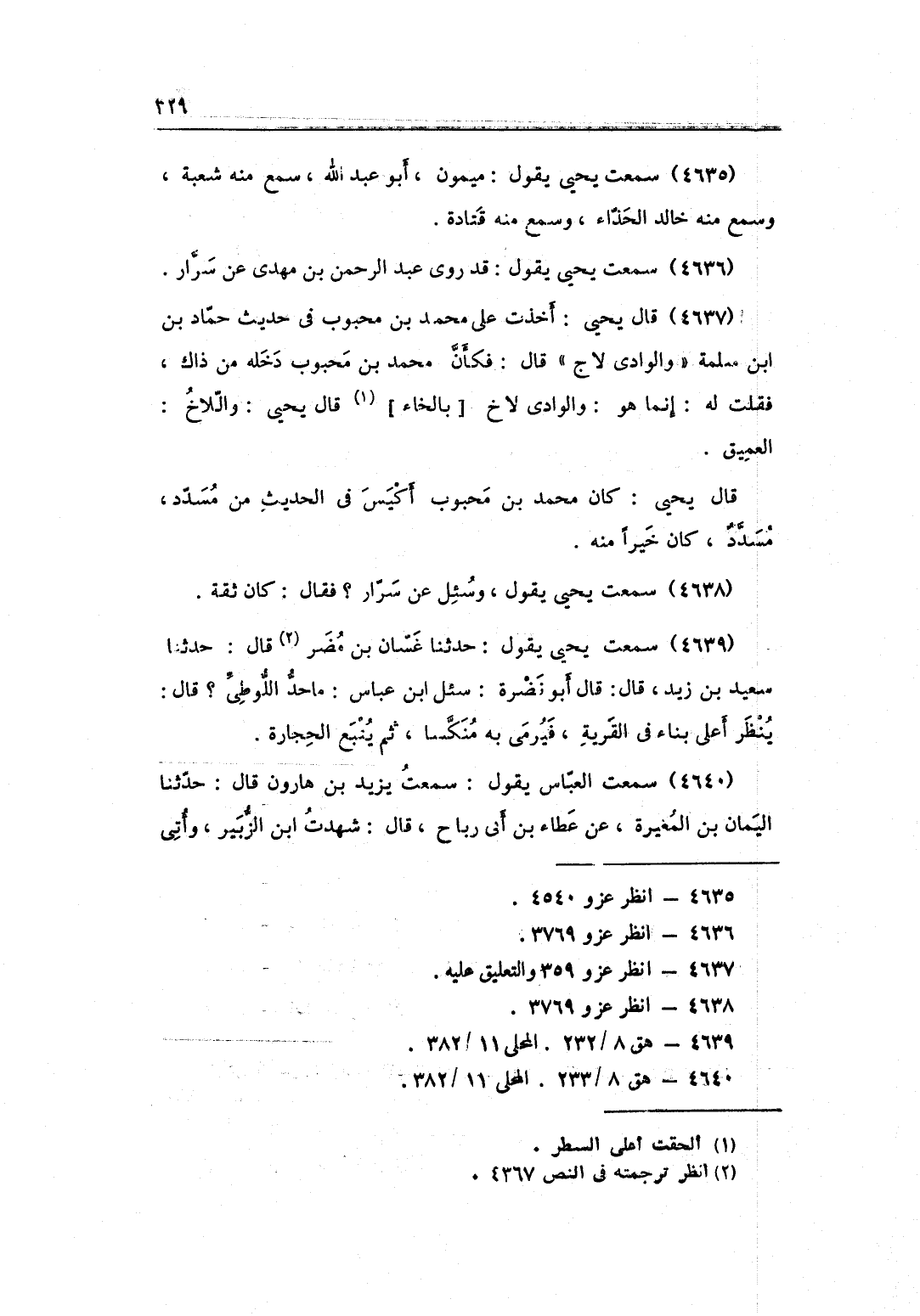 4637 - قَالَ يحيى أخذت على مُحَمَّد بن مَحْبُوب فِي حَدِيث حَمَّاد بن سَلمَة والوادي لاج قَالَ فَكَأَن مُحَمَّد بن مَحْبُوب دخله من ذَاك فَقلت لَهُ إِنَّمَا هُوَ والوادي لاخ بِالْخَاءِ قَالَ يحيى واللاخ العميق قَالَ يحيى كَانَ مُحَمَّد بن مَحْبُوب أَكيس فِي الحَدِيث من مُسَدّد مُسَدّد كَانَ خيرا مِنْهُ