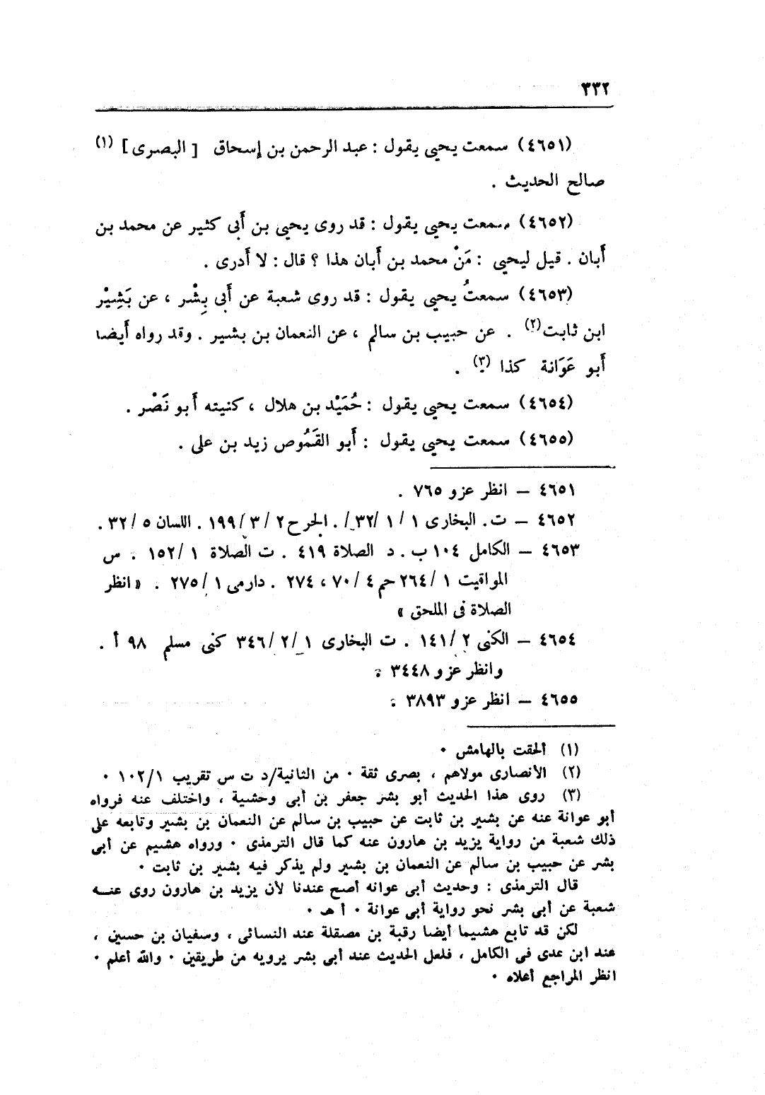 4654 - سَمِعت يحيى يَقُول حميد بن هِلَال كنيته أَبُو نصر