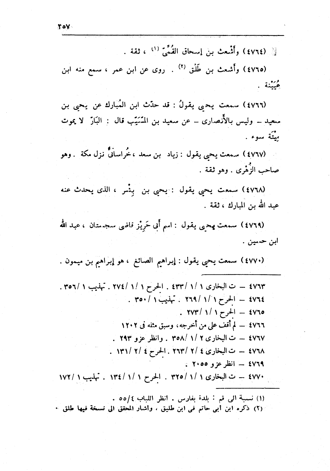 4768 - سَمِعت يحيى يَقُول يحيى بن بشر الَّذِي يحدث عَنهُ عبد الله بن الْمُبَارك ثِقَة