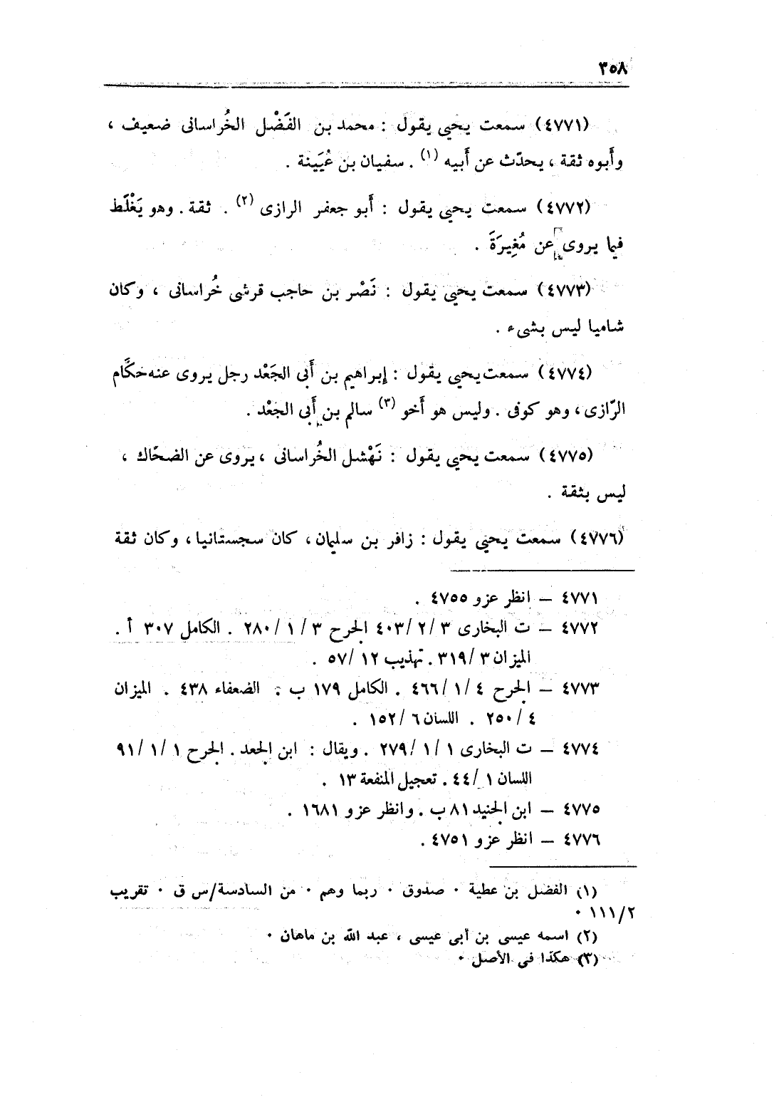 4775 - سَمِعت يحيى يَقُول نهشل الْخُرَاسَانِي يرْوى عَن الضَّحَّاك لَيْسَ بِثِقَة