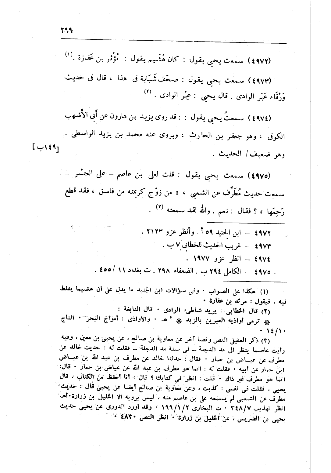 4973 - سَمِعت يحيى يَقُول صحف شبابه فِي هَذَا قَالَ فِي حَدِيث وَرْقَاء عبر الْوَادي قَالَ يحيى عبر الْوَادي