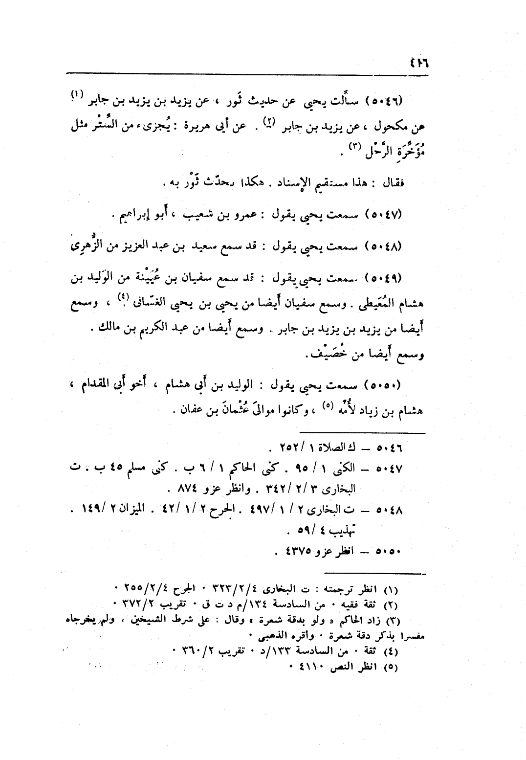 5049 - سَمِعت يحيى يَقُول قد سمع سُفْيَان بن عُيَيْنَة من الْوَلِيد بن هِشَام المعيطي وَسمع سُفْيَان أَيْضا من يحيى بن يحيى الغساني وَسمع أَيْضا من يزِيد بن يزِيد بن جَابر وَسمع أَيْضا من عبد الْكَرِيم بن مَالك وَسمع أَيْضا من خصيف