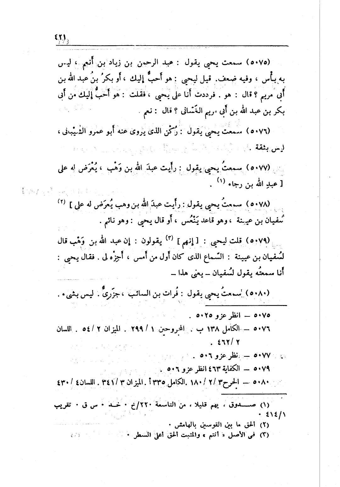 5077 - سَمِعت يحيى يَقُول رَأَيْت عبد الله بن وهب يعرض لَهُ على عبد الله بن رَجَاء