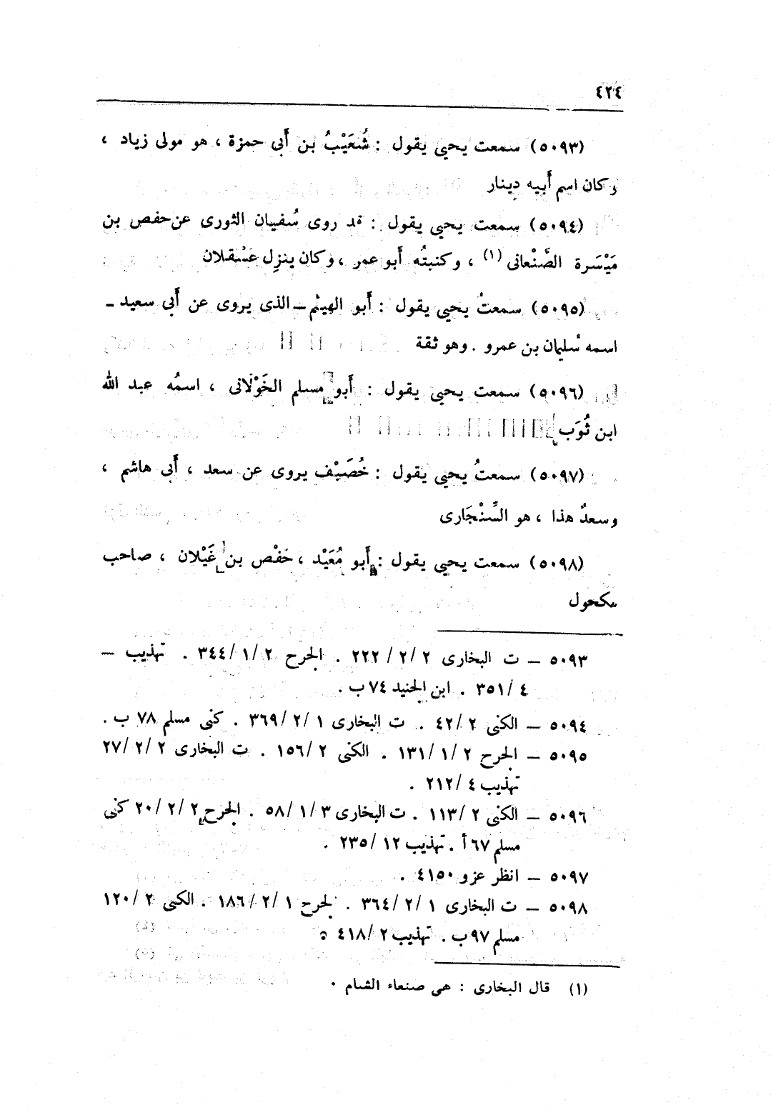 5094 - سَمِعت يحيى يَقُول قد روى سُفْيَان الثَّوْريّ عَن حَفْص بن ميسرَة الصَّنْعَانِيّ وكنيته أَبُو عمر وَكَانَ ينزل عسقلان