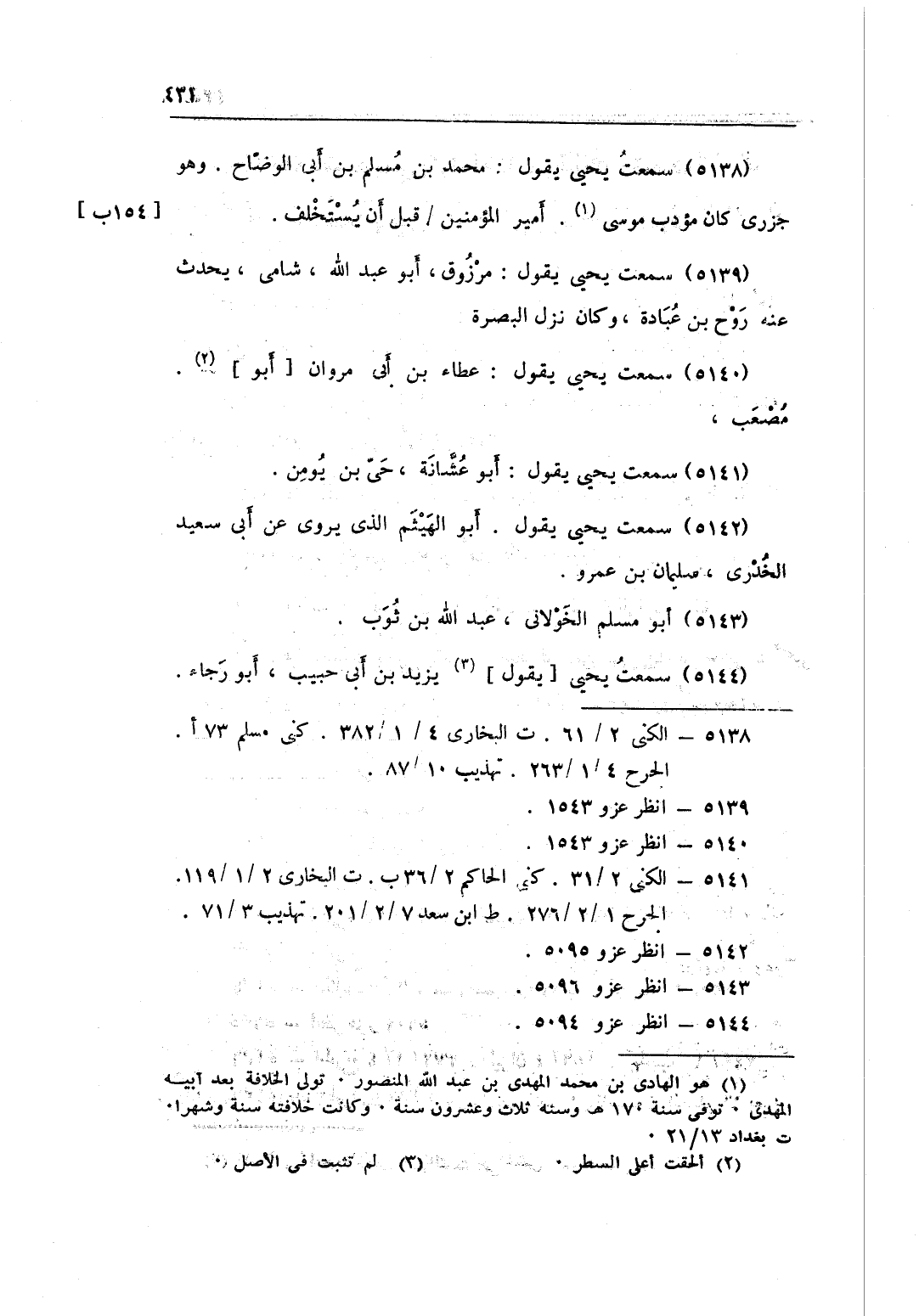 5138 - سَمِعت يحيى يَقُول مُحَمَّد بن مُسلم بن أبي الوضاح وَهُوَ جزري كَانَ مؤدب مُوسَى أَمِير الْمُؤمنِينَ قبل أَن يسْتَخْلف