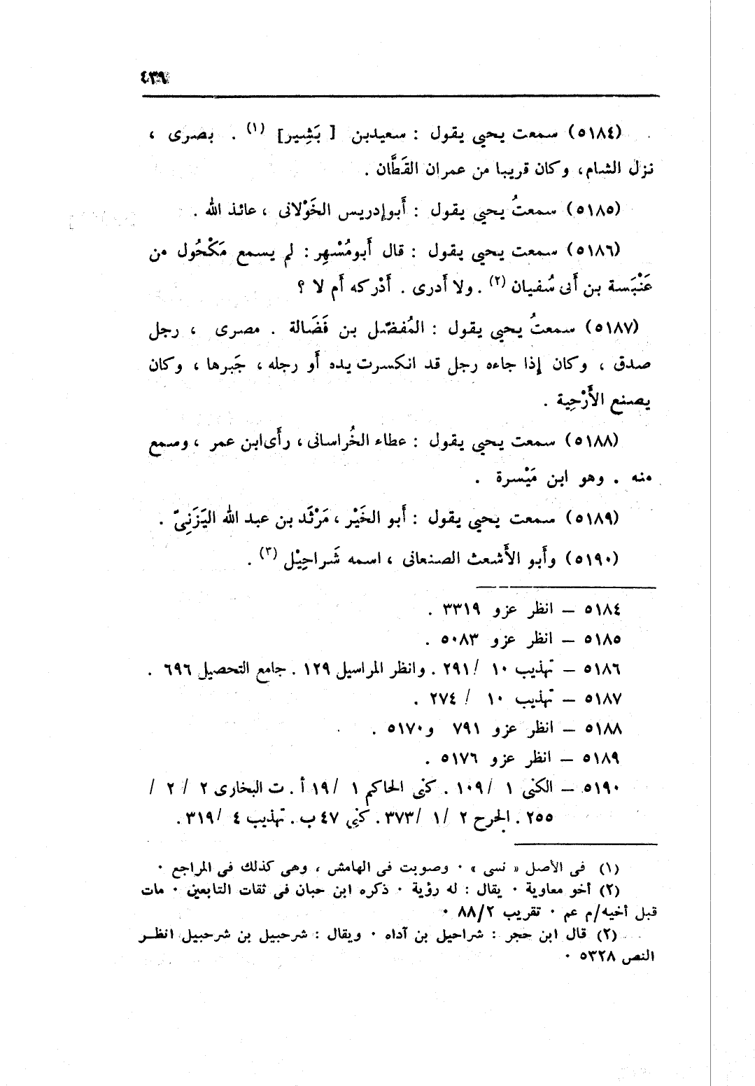 5186 - سَمِعت يحيى يَقُول قَالَ أَبُو مسْهر لم يسمع مَكْحُول من عَنْبَسَة بن أبي سُفْيَان وَلَا أَدْرِي أدْركهُ أم لَا