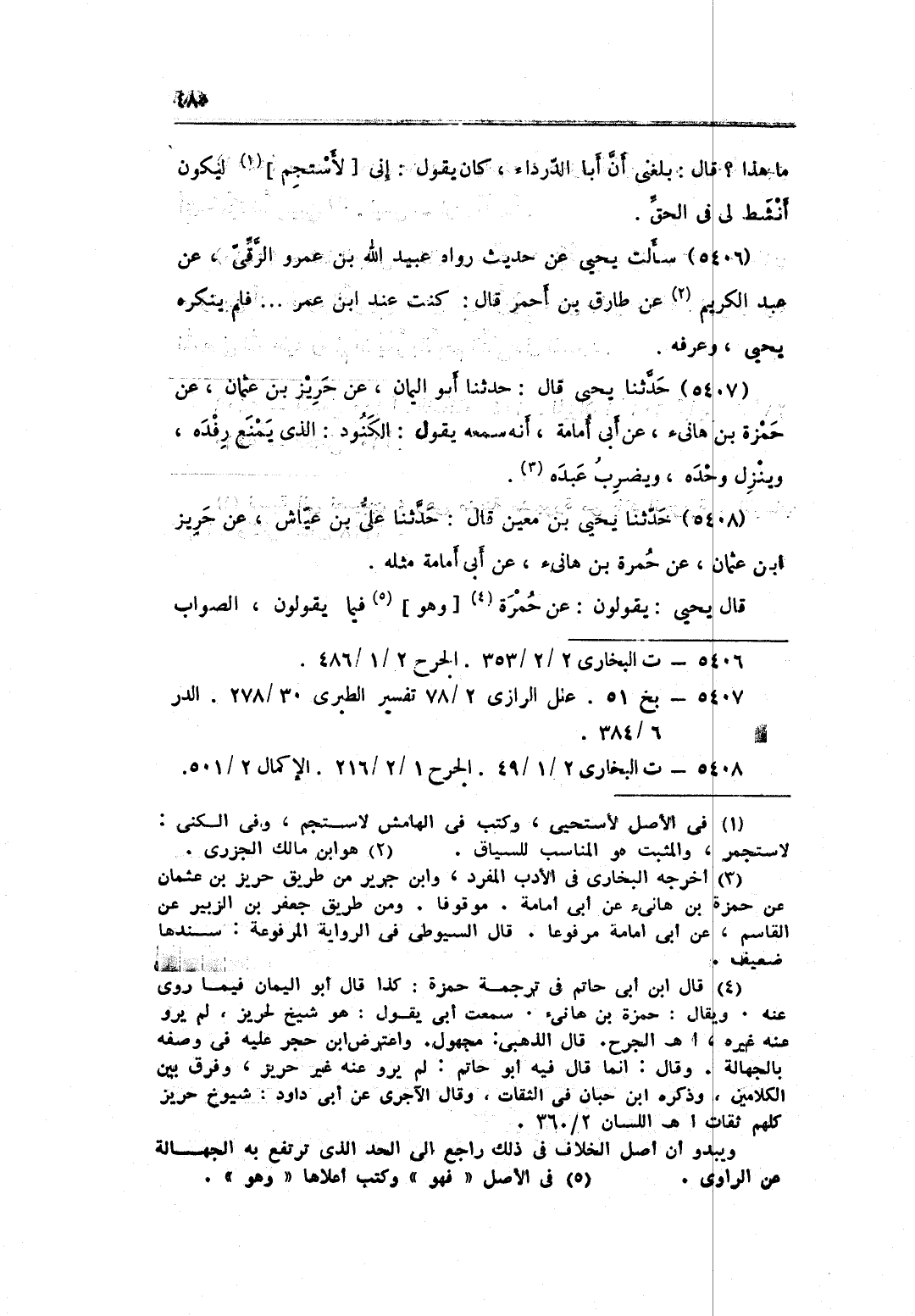 5408 - حَدثنَا يحيى بن معِين قَالَ حَدثنَا عَليّ بن عَيَّاش عَن حريز بن عُثْمَان عَن حَمْزَة بن هَانِئ عَن أبي أُمَامَة مثله قَالَ يحيى يَقُولُونَ عَن حمرَة وَهُوَ فِيمَا يَقُولُونَ الصَّوَاب