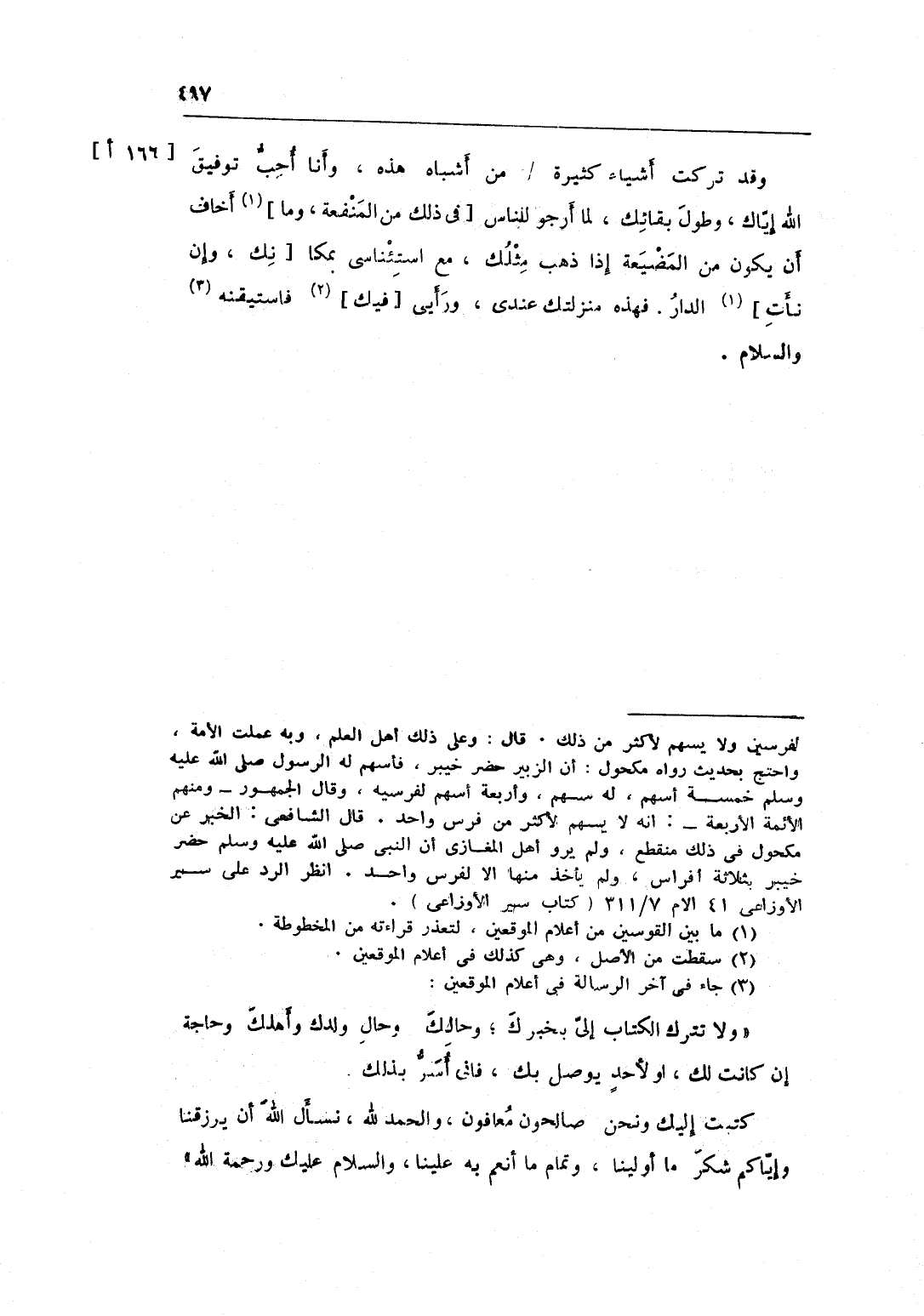 وَقد تركت أَشْيَاء كَثِيرَة من أشباه هَذِه وَأَنا أحب توفيق الله إياك وَطول بقائك لما أَرْجُو للنَّاس فِي ذَلِك من الْمَنْفَعَة وَمَا أَخَاف أَن يكون من المضيعة إِذا ذهب مثلك مَعَ استئناسي بمكانك وَإِن نأت الدَّار فَهَذِهِ منزلتك عِنْدِي ورأيي فِيك فاستيقنه وَالسَّلَام