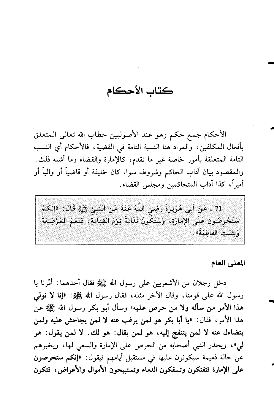71 - عن أبي هريرة رضي الله عنه عن النبي صلى الله عليه وسلم قال "إنكم ستحرصون على الإمارة وستكون ندامة يوم القيامة فنعم المرضعة وبئست الفاطمة"
