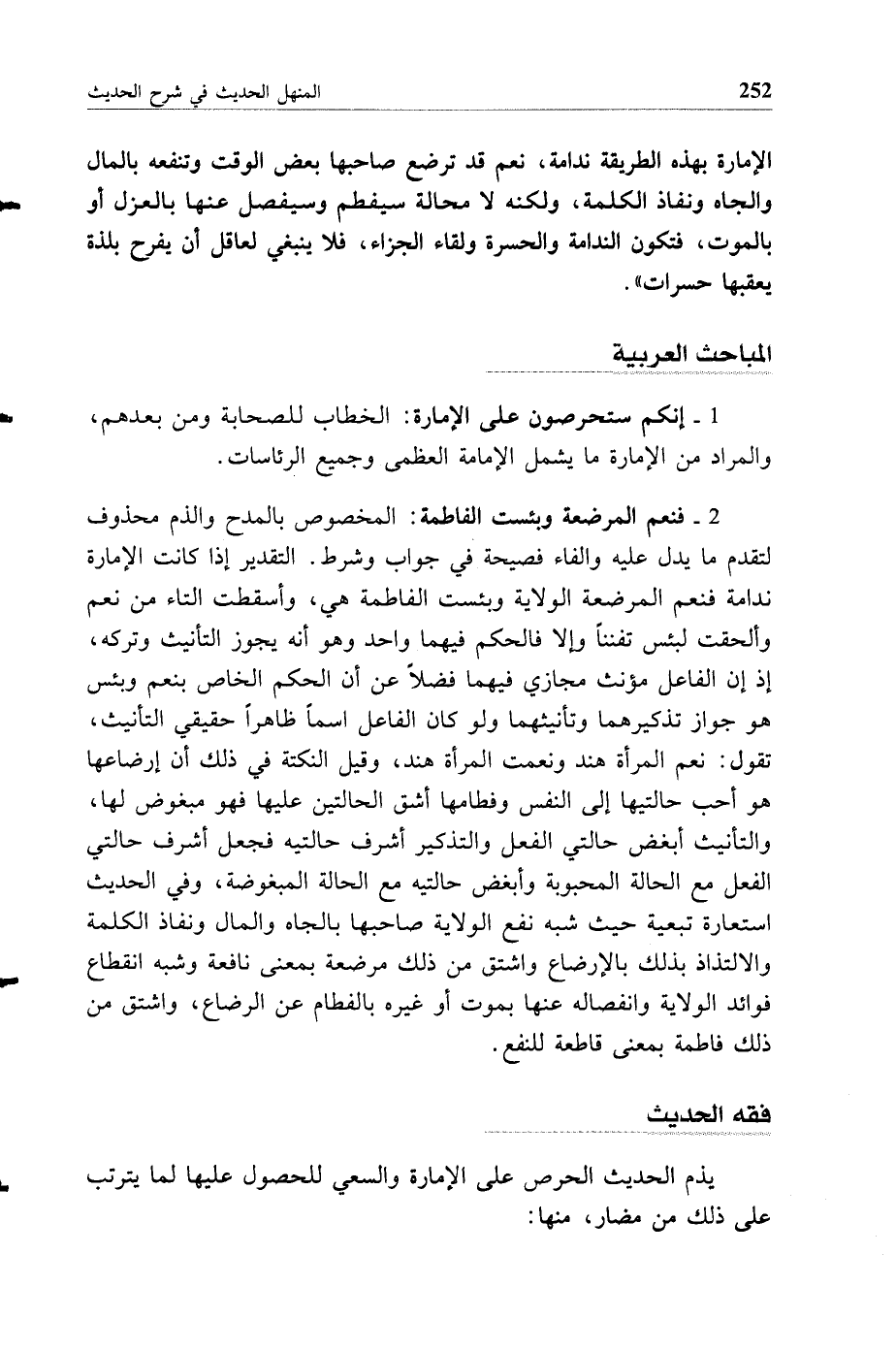 يذم الحديث الحرص على الإمارة والسعي للحصول عليها لما يترتب على ذلك من مضار منها