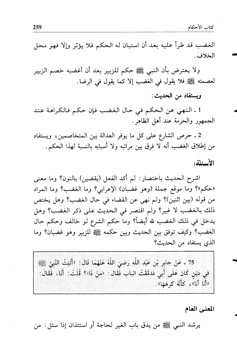 75 - عن جابر بن عبد الله رضي الله عنهما قال "أتيت النبي صلى الله عليه وسلم في دين كان على أبي فدققت الباب فقال من ذا فقلت أنا فقال أنا أنا كأنه كرهها"