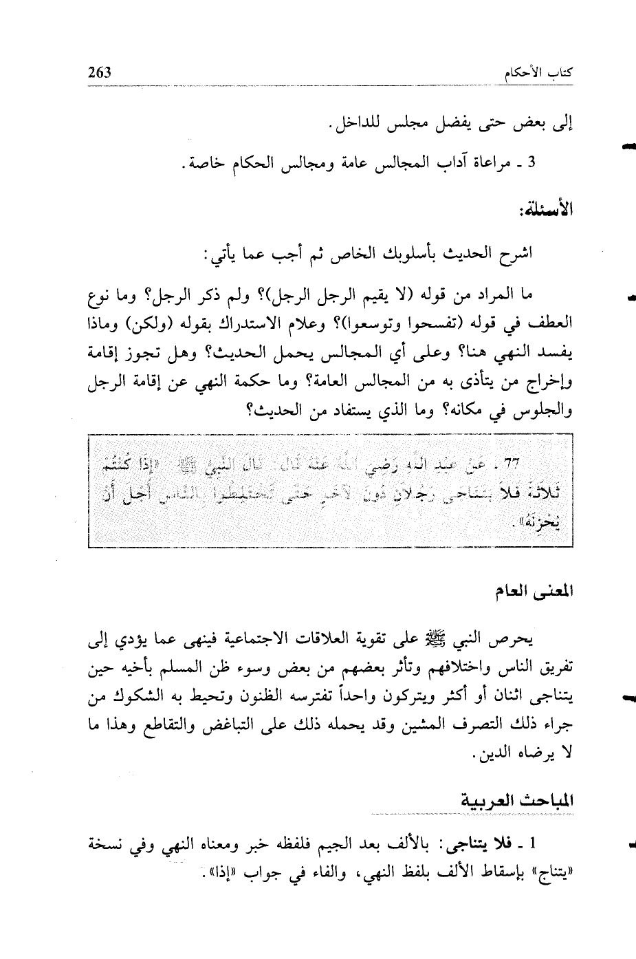 77 - عن عبد الله رضي الله عنه قال قال النبي صلى الله عليه وسلم "إذا كنتم ثلاثة فلا يتناجى رجلان دون الآخر حتى تختلطوا بالناس أجل أن يحزنه"