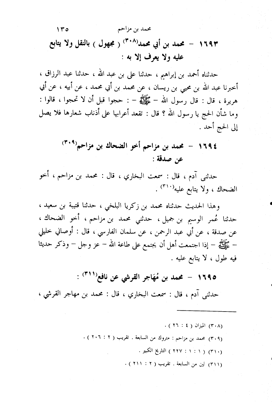 §1694 - مُحَمَّدُ بْنُ مُزَاحِمٍ أَخُو الضَّحَّاكِ بْنِ مُزَاحِمٍ , عَنْ صَدَقَةَ. حَدَّثَنِي آدَمُ قَالَ: سَمِعْتُ الْبُخَارِيَّ قَالَ: مُحَمَّدُ بْنُ مُزَاحِمٍ أَخُو الضَّحَّاكِ , وَلَا يُتَابَعُ عَلَيْهِ