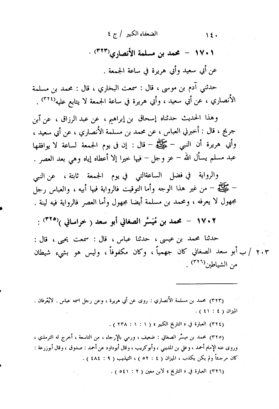 §1701 - مُحَمَّدُ بْنُ مَسْلَمَةَ الْأَنْصَارِيُّ عَنْ أَبِي سَعِيدٍ، وَأَبِي هُرَيْرَةَ فِي سَاعَةِ الْجُمُعَةِ. حَدَّثَنِي آدَمُ بْنُ مُوسَى قَالَ: سَمِعْتُ الْبُخَارِيَّ قَالَ: مُحَمَّدُ بْنُ مَسْلَمَةَ الْأَنْصَارِيُّ , عَنْ أَبِي سَعِيدٍ، وَأَبِي هُرَيْرَةَ فِي سَاعَةِ الْجُمُعَةِ لَا يُتَابَعُ عَلَيْهِ